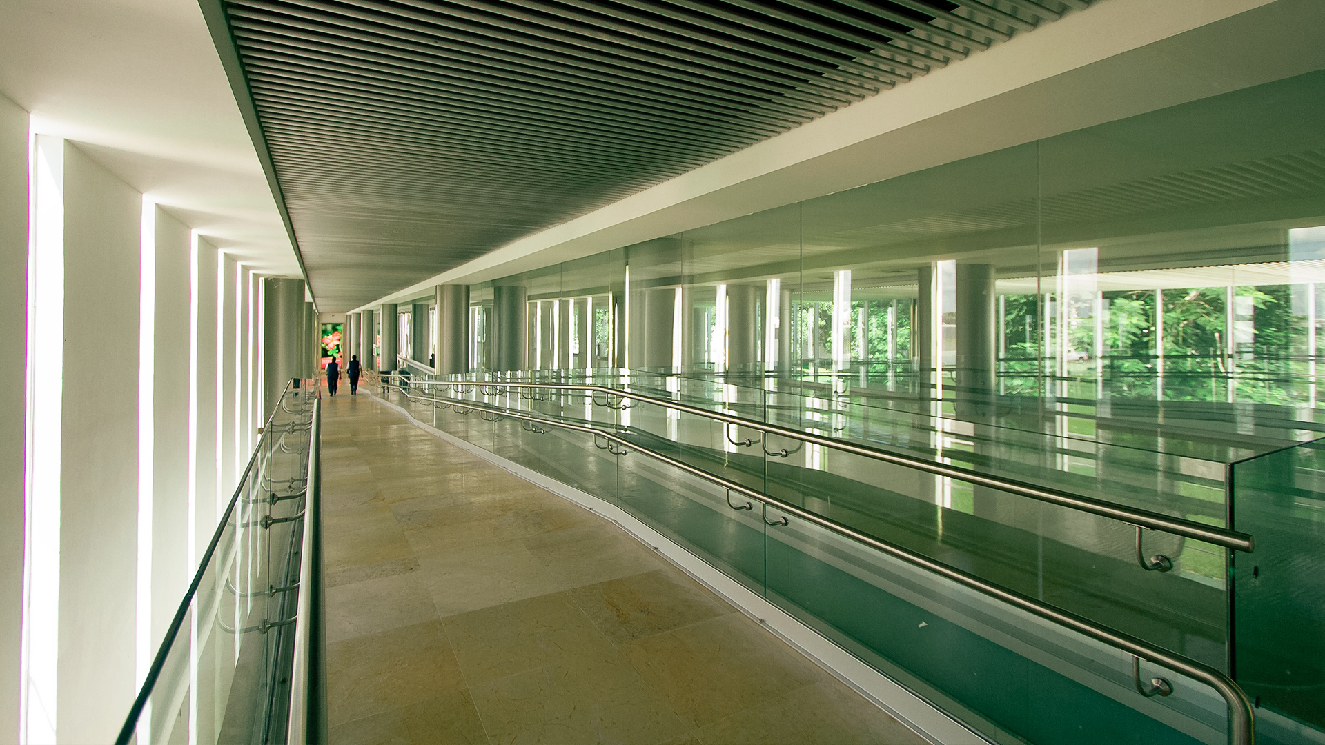 From the perspective that “an airport is a machine for processing passengers,” reconfiguring and expanding an existing airport to respond to new regulations and increased traffic was a major challenge, as was accurately addressing functional requirements and sensitively addressing perceptual ones. The project included a double portico for platforms, departure lounges, baggage claim, and circulation areas.