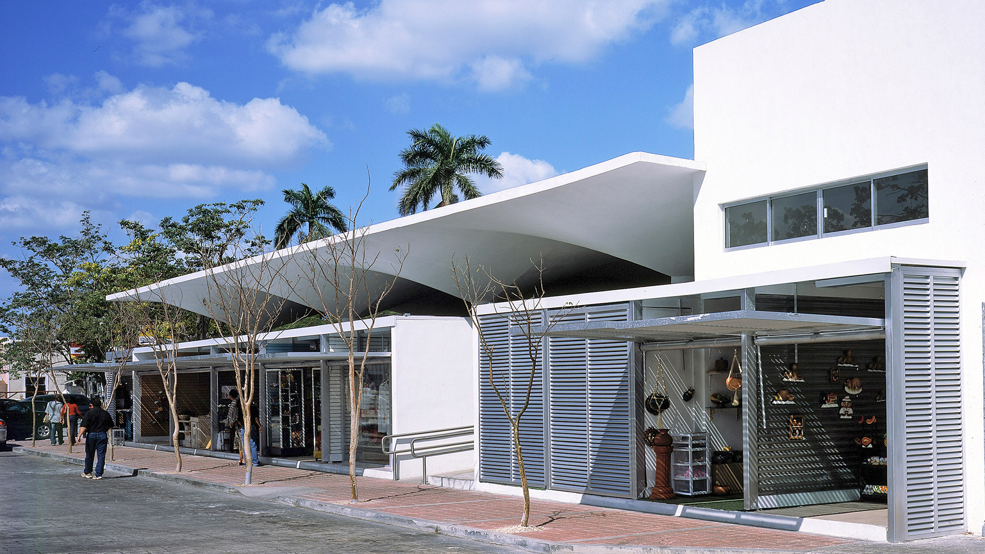 Built in 1959 in the neighborhood of the same name, the Santa Ana Market was constructed with hyperbolic paraboloids of reinforced concrete on columns, under which stalls and perimeter premises with latticework were housed.