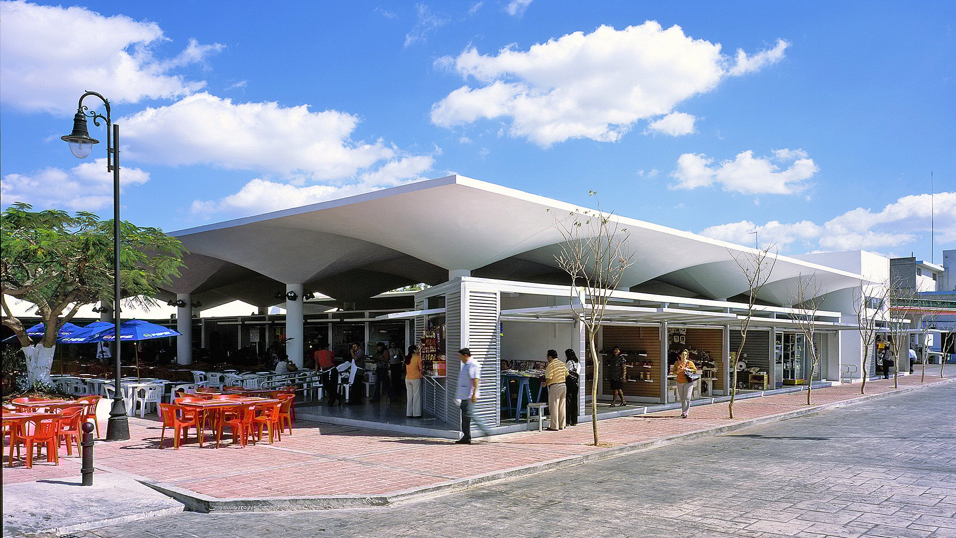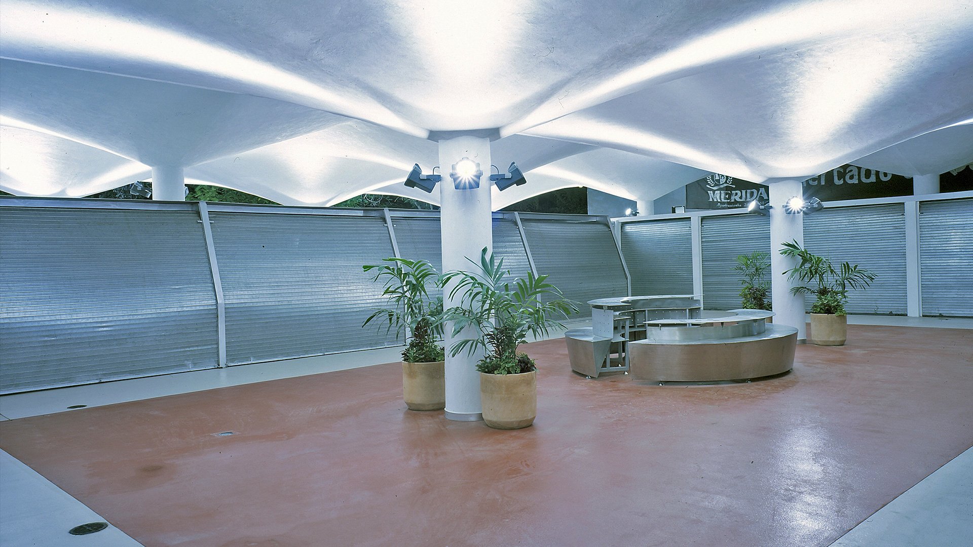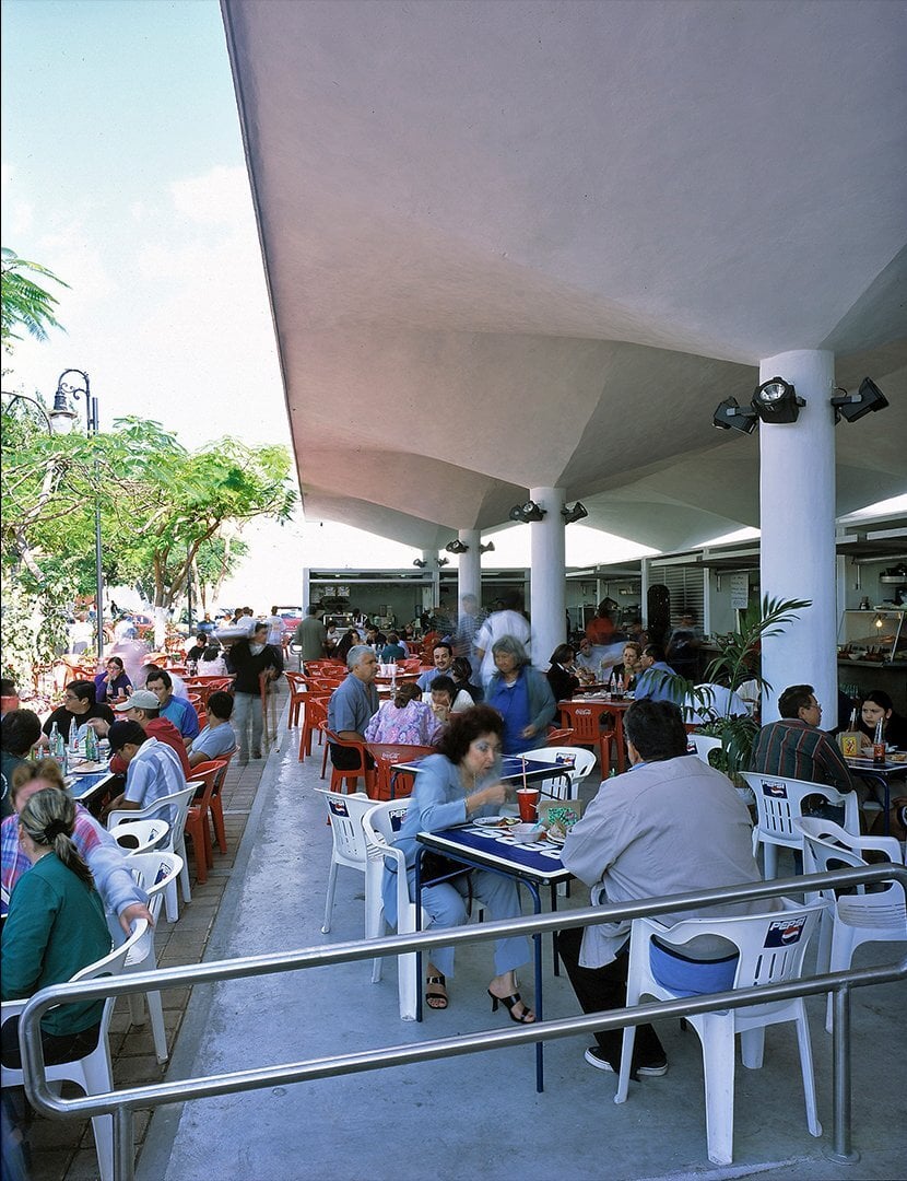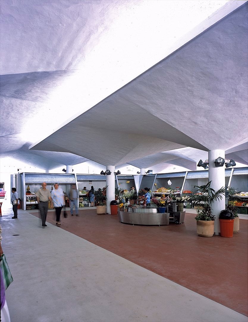 Its revitalization in 2002, due to neglect and deterioration, included the demolition of obsolete premises and facilities, preserving the paraboloids and creating a large shaded terrace with two areas: a morning market and a gastronomic and tourist area. A new central paraboloid creates a courtyard and ventilation. The use of hygienic and durable materials such as stainless steel and aluminum ensures minimal maintenance.
