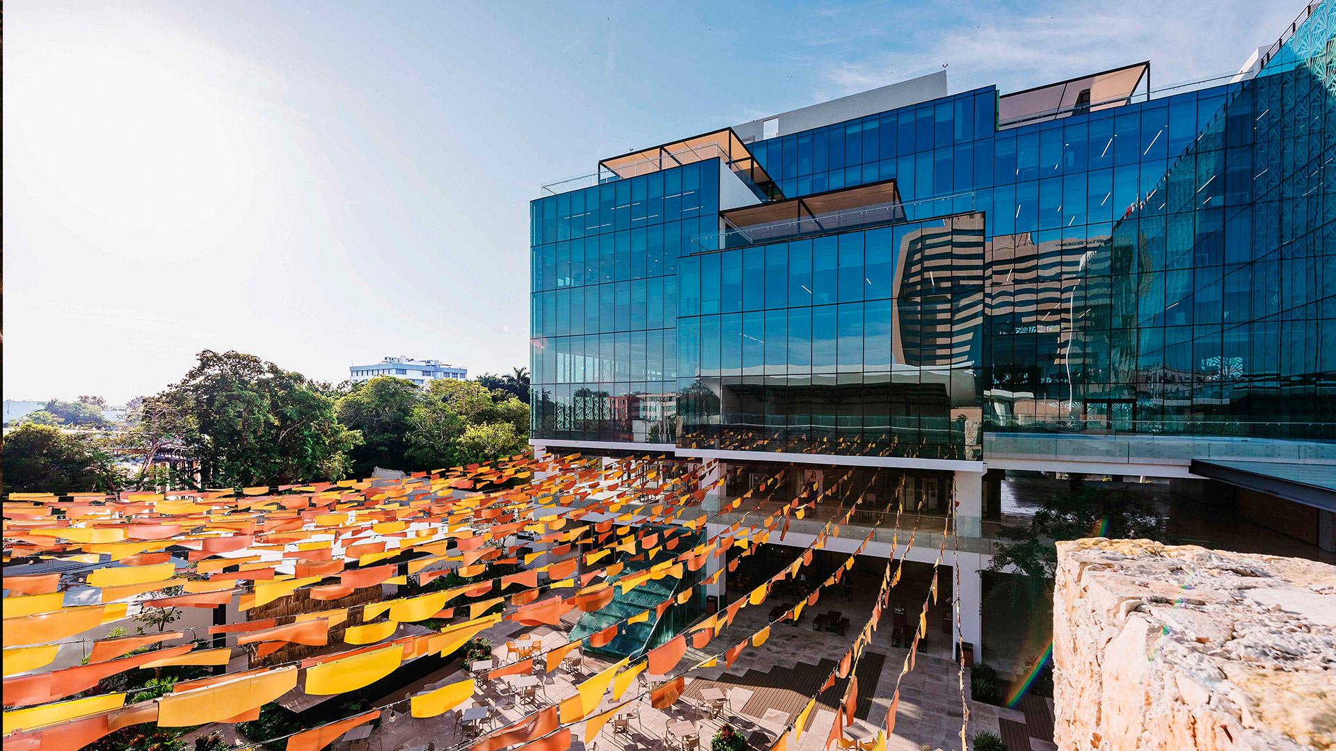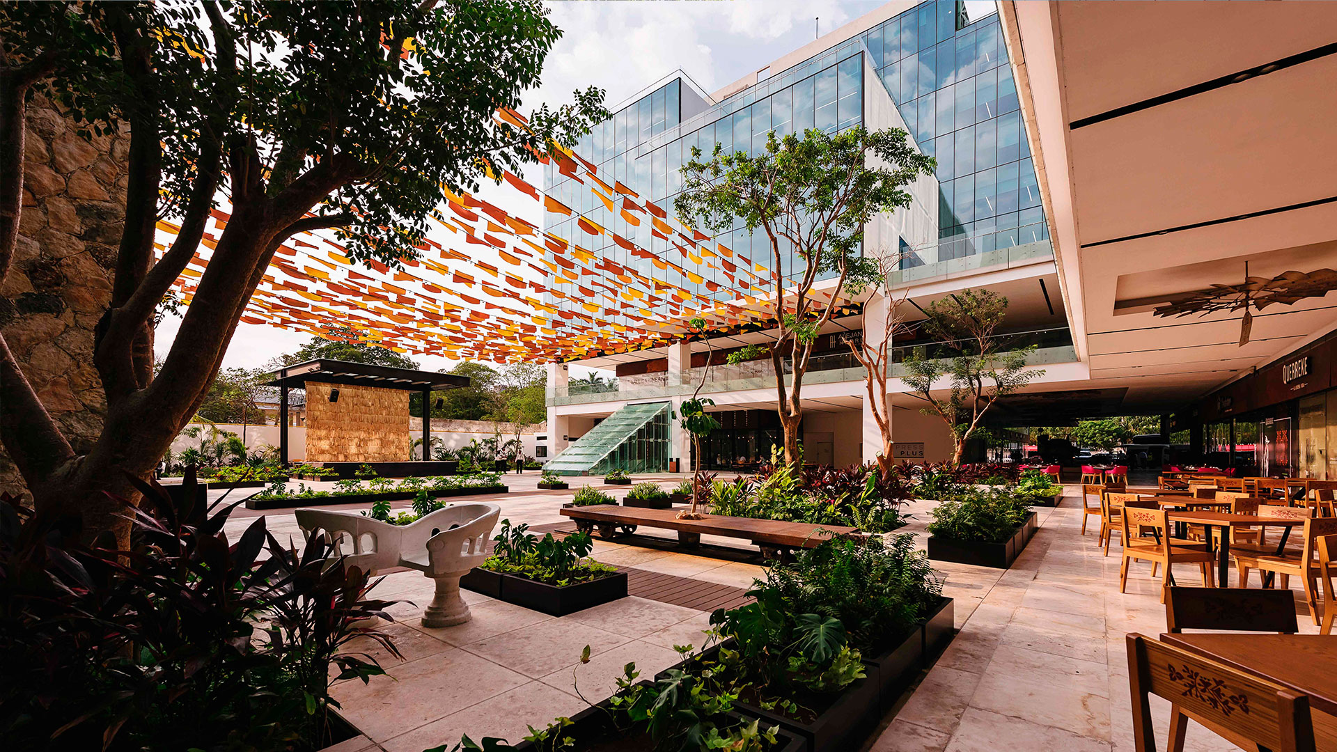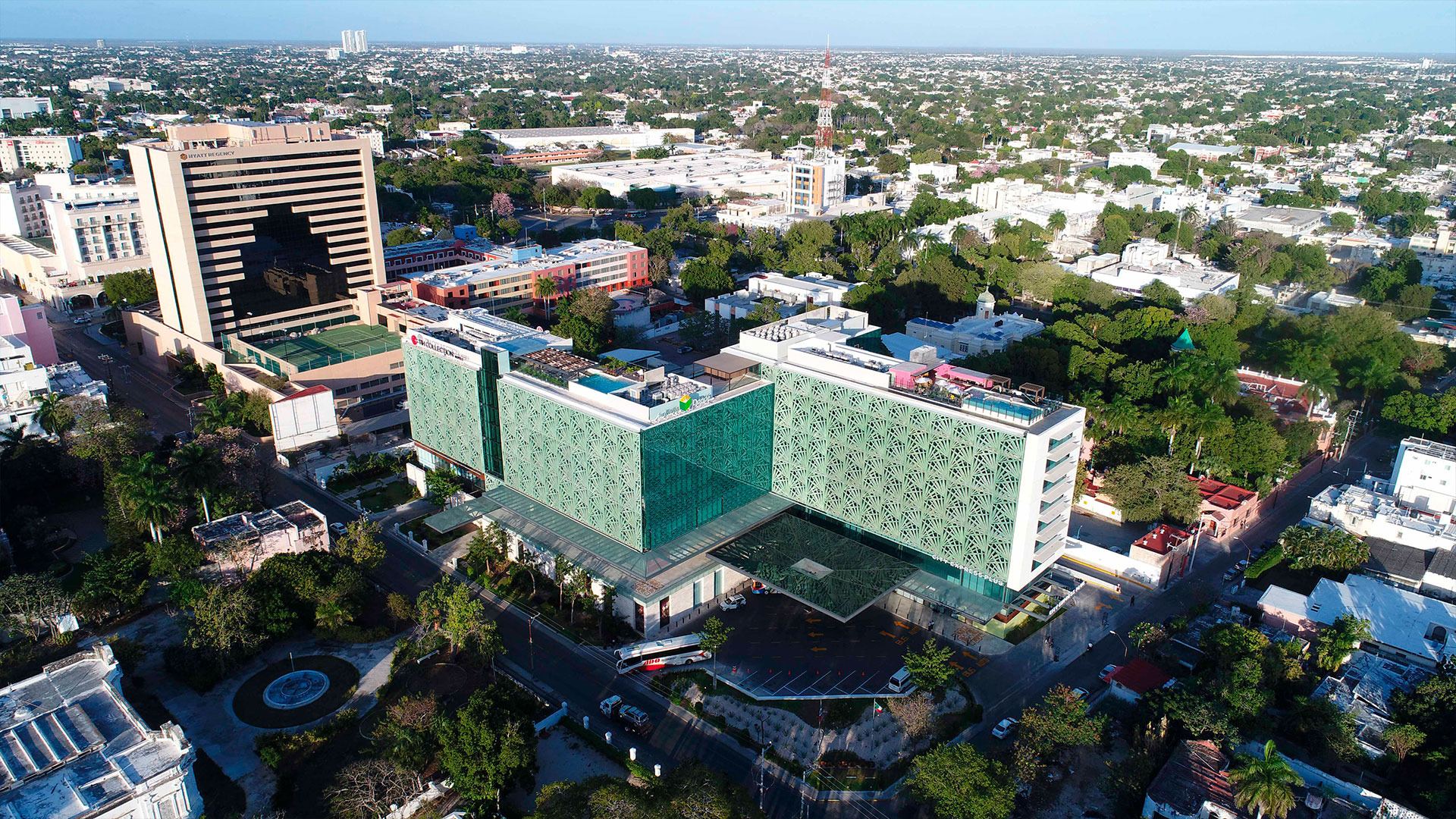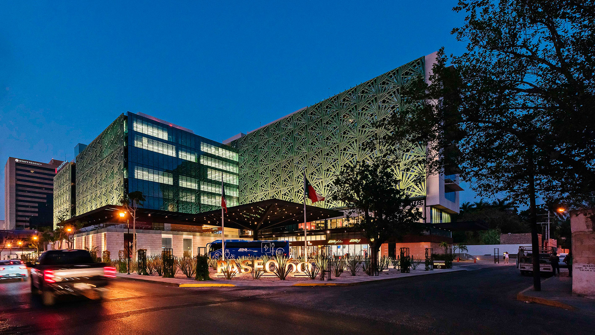 A complex combining tourism, commerce, offices, and culture, it references the legacy of henequen and its transformative boom. It responds to the site through a plaza, a “zaguán” (entrance hall), and a courtyard; it is sensitive to the climate and the neighboring heritage. It is clad in a thematic epidermis that mitigates the sun and evokes the once seemingly endless agave fields of the haciendas.