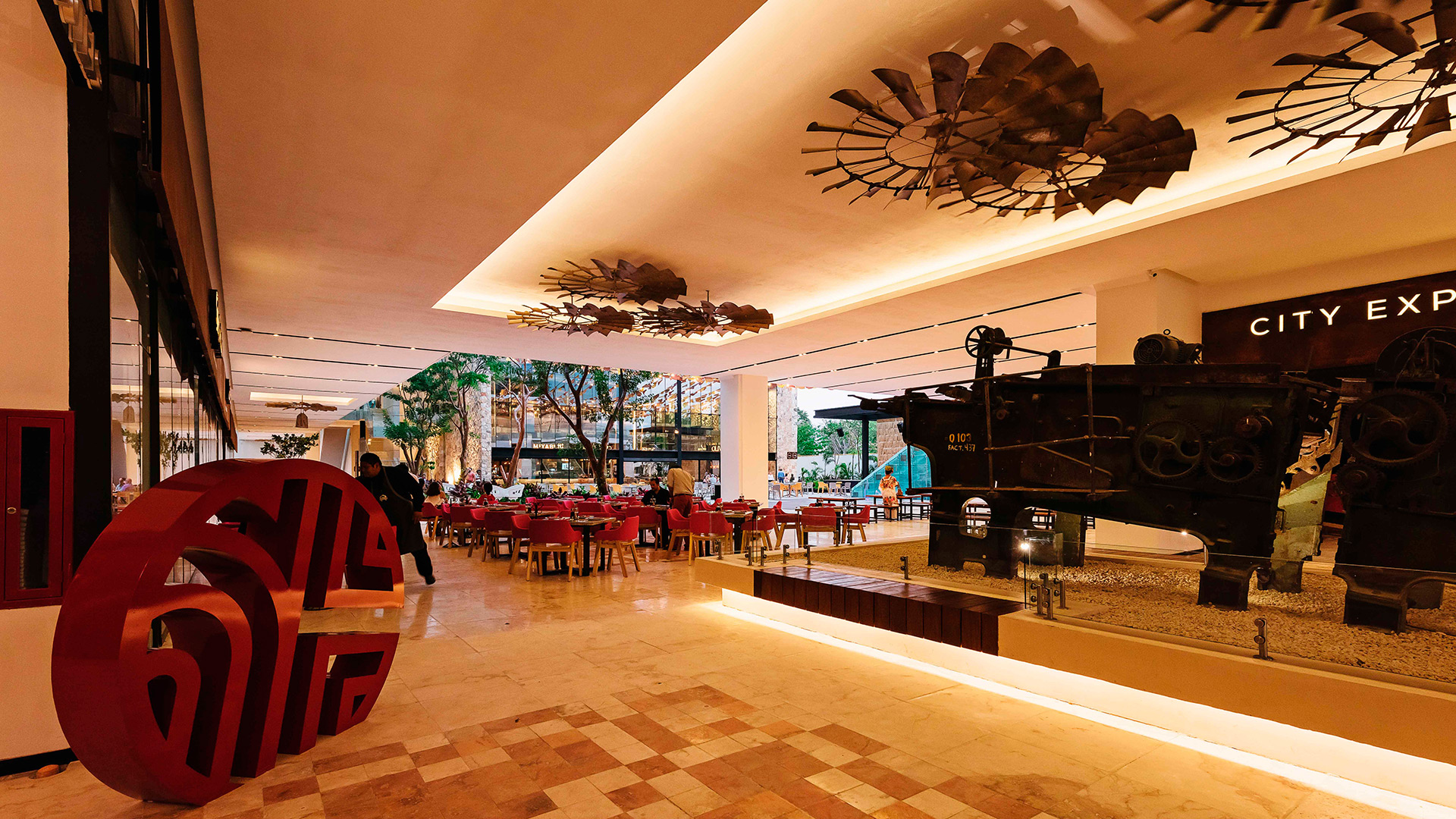 The commission also included the design of the NH Collection hotel, where the use of local materials reinforced its identity without losing the brand image, and the Gourmet Market, which humorously evokes the pre-existence of a henequen engine house, uniting origin and result in a historical pairing.