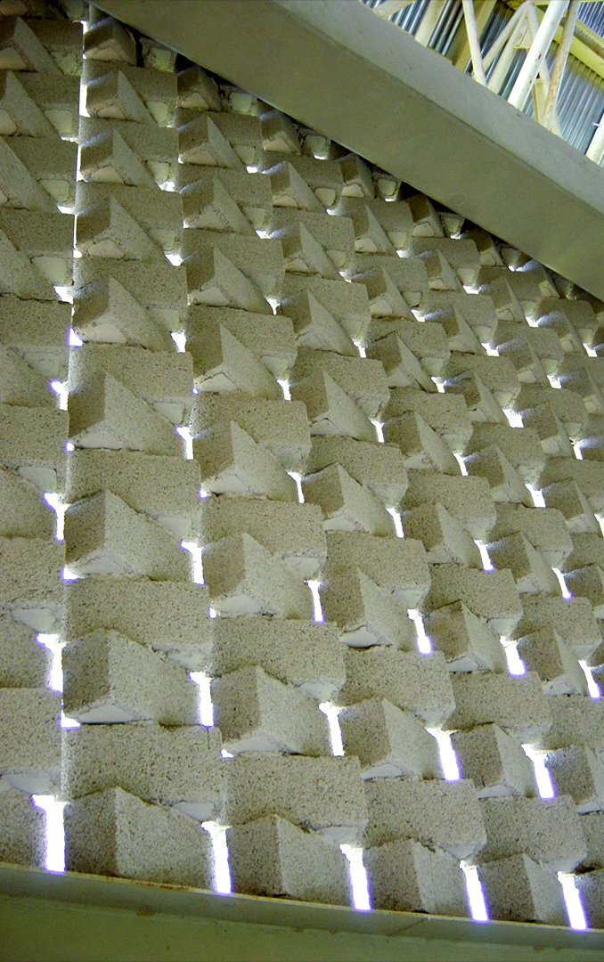 Minimal materials were used in their natural appearance, highlighting the color of the region's resources. The main element was the hollow concrete block, which offered alternative arrangements: sometimes latticework, sometimes windows, and sometimes blind walls.